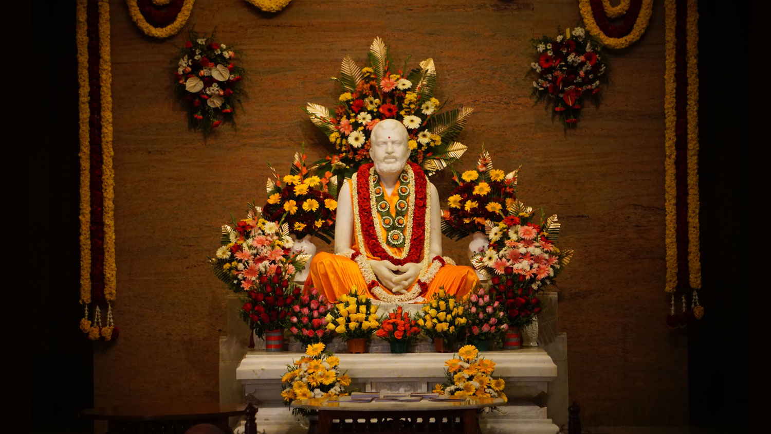 The temple is located in the ground floor room at the north end of the main building of the ashram. Apart from the daily pujas, special pujas are held on Maghi Purnima and Ramnam sankirtan is sung on every full moon day.