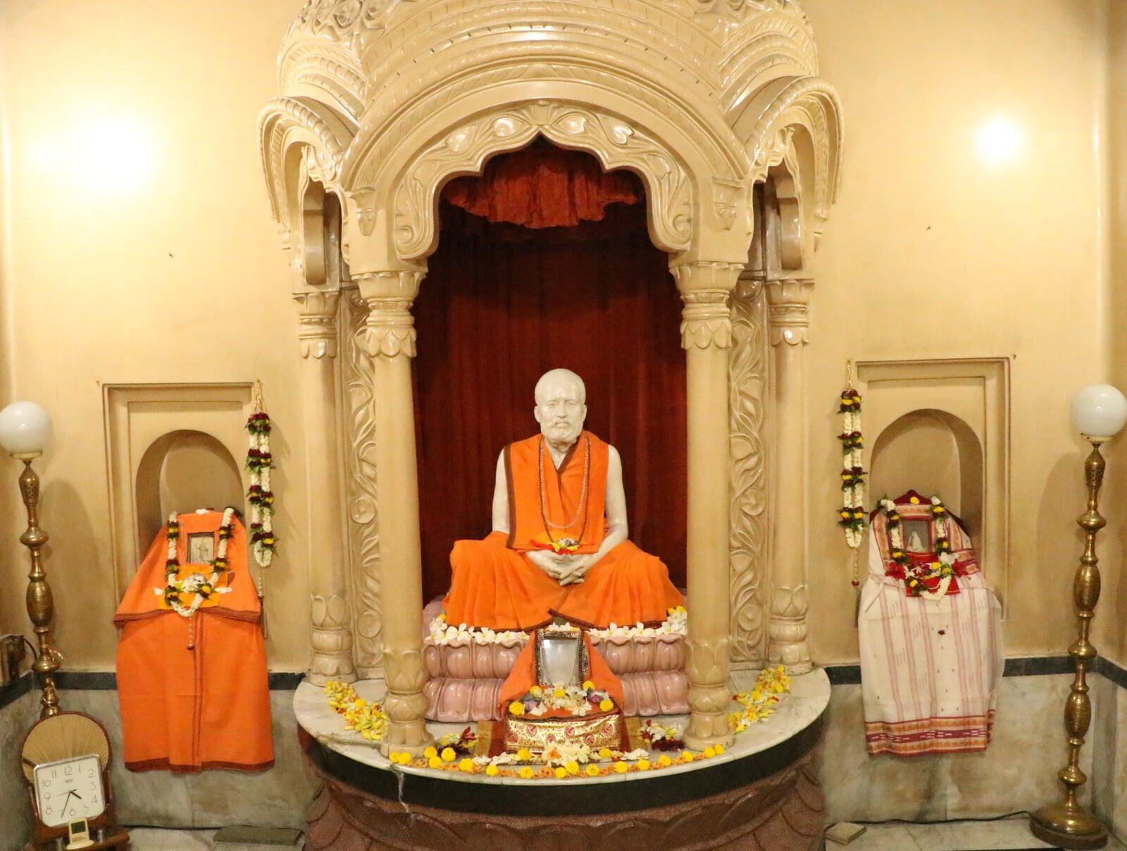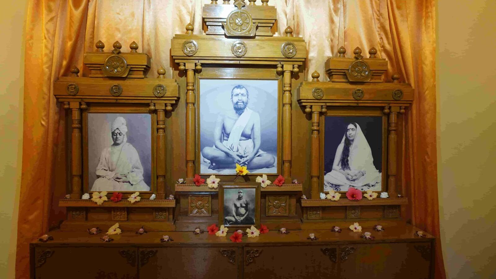 The temple is located in the ground floor room at the north end of the main building of the ashram. Apart from the daily pujas, special pujas are held on Maghi Purnima and Ramnam sankirtan is sung on every full moon day.
