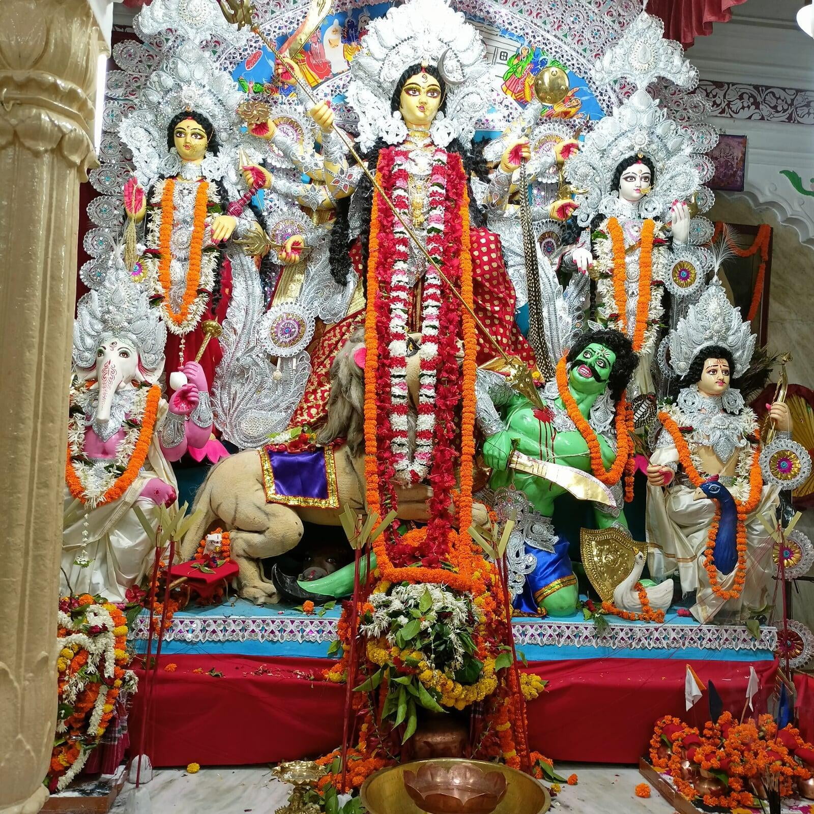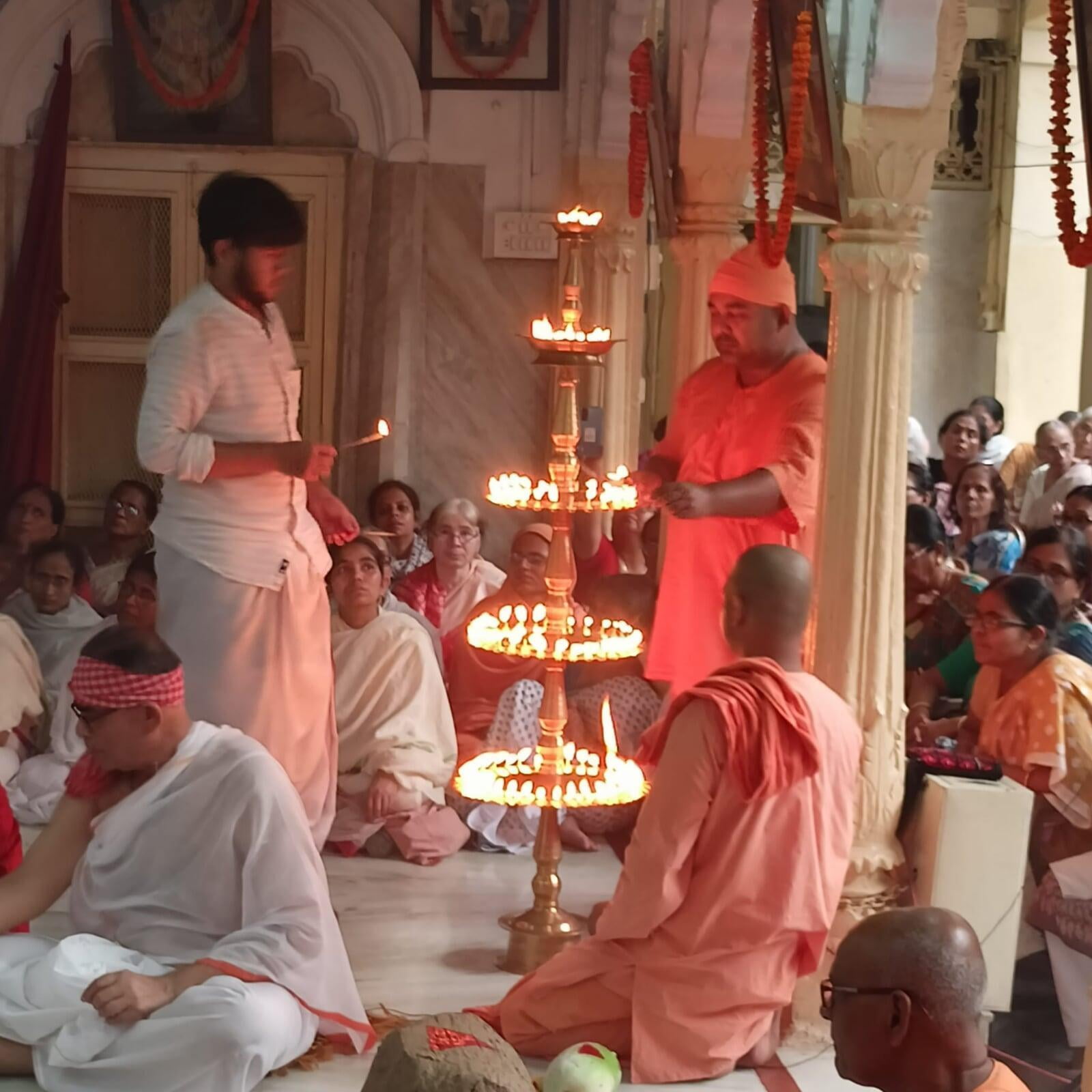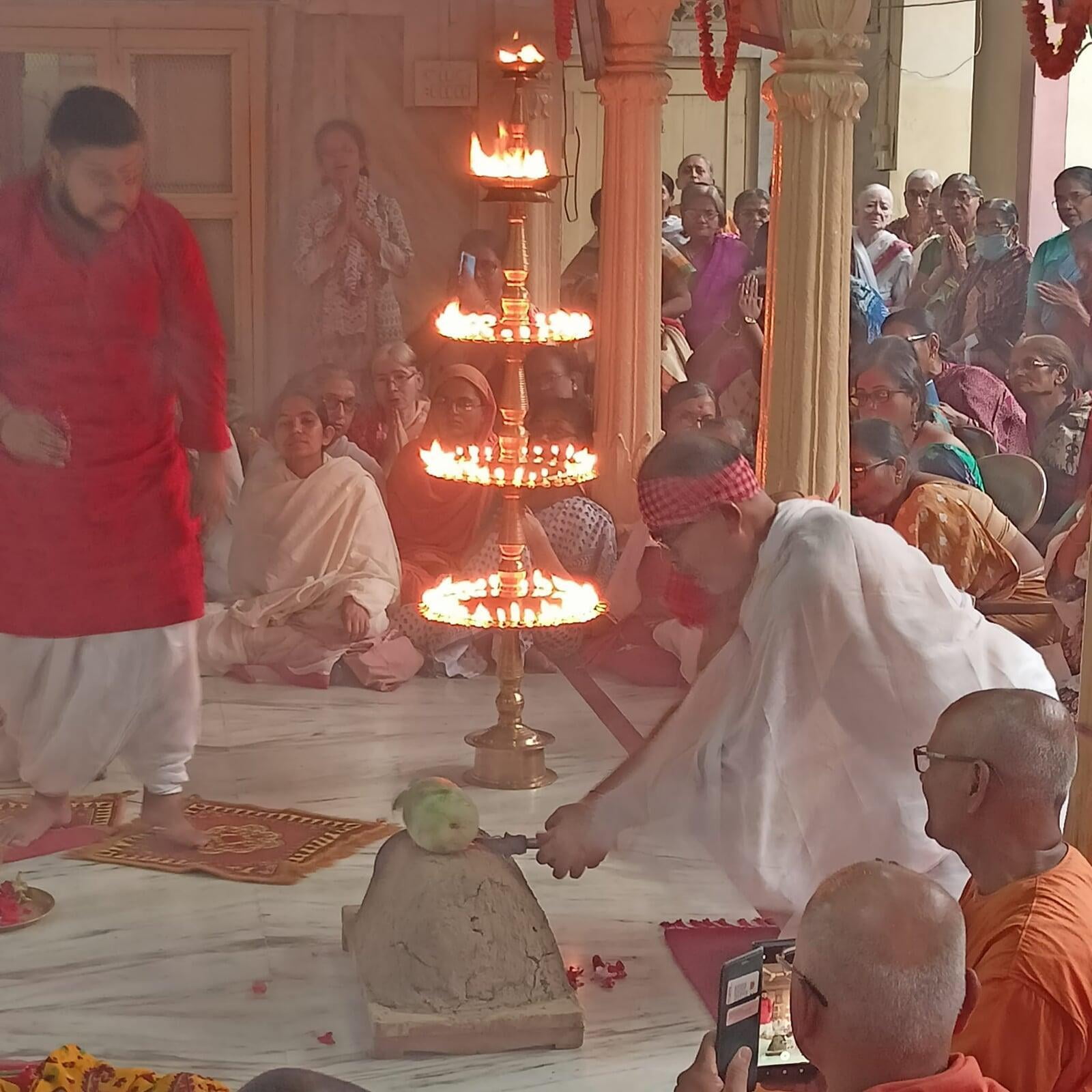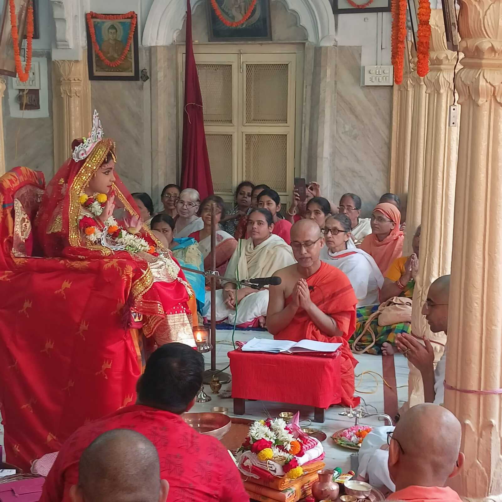 Durgotsava in the city of Lord Vishwanath has a special significance both religiously and socially. After Belur Math, the headquarters of Ramakrishna order, if the Durga Puja of any branch is regarded as the most ancient and traditional, it is that of Kashi Ramakrishna Advaita Ashrama. In the year 1908 on the special request of Pulin Babu (a devotee), Swami Brahmananda ji arranged for the first Durga Puja to be performed in image (pratima) here. After this, in the year 1913 on the special prayer of Nistarini Devi, the wife of Sri Navgopal Ghosh (a devotee of Sri Sri Thakur), Raja Maharaj himself made special arrangements for Durga Puja to be performed in Pratima itself and was physically present during the entire celebration. Since then, every year Durga Puja is being held perpetually at the historical Durga Mandap located in the Ashrama in a grand refulgent idol conventionally made on a single base (Ek Chala). The tradition of performing Kali Kirtan during Durga Puja originated from here itself. Even today, Kashi Advaita Ashrama has a different identity among the three popular schools (gharanas) of Kali Kirtan in the Ramakrishna Sangha. Sadhus of Sevashrama use to practice Kali Kirtan every year prior to the Puja and when the chorus is sung collectively in the mandap, the atmosphere seems to be mesmerizing and infusing a new life filled with unbounded ecstasy. There is a practice of performing tantric homa on Navami, but only in Kashi Advaita Ashrama, Vedic Hawan (यजर्वेु र्वेदीय कुशकण्डिका) was done under the supervision of learned sanyasis and Sanskrit pundits of Kashi. On the Shasthi tithi vishal Sadhu Bhandara is organized for the sadhus of Dashanami Sampradaya (monks in the tradition of Acharya Shankar) including some other groups of monks who maintain close relation with the Ashrama. Nearly three thousand devotees partake anna bhog prasad (cooked lunch Prasad) in the noon on all the three days of the mahapuja i.e. saptami, mahashtami and mahanavami. Devotees come from far and wide to see the unique beauty of Kumari Puja. The evening aarti is performed by the pujari (the worshiper or the priest), the tantradharak (monk who chants mantras) and the chandi pathak (monk who recites Sri Sri Chandi or Devimahatamaya) mutually together. On Vijaya Dashami, after immersion of the idol, shantijal is sprinkled on the devotees. Hence, the Durga Puja of Kashi Advaita Ashrama has its own tradition, uniqueness and importance in Ramakrishna Math & Mission. Even the common mass of Kashi consider their Navratri to be incomplete without having the darshan of the magna-mater videlicet Maa Durga at Advaita Ashrama as there is a general belief among them that the worship of Kaudiya Hospital (as localite refer to Sevashrama) is performed with complete devotion adhering to the shastric tradition. Devotees from different parts of the city and nation at large alike experience a magnetic pull and frequent the ashrama year after year on during Durga Puja.