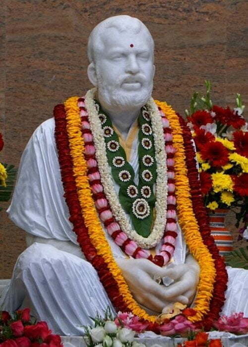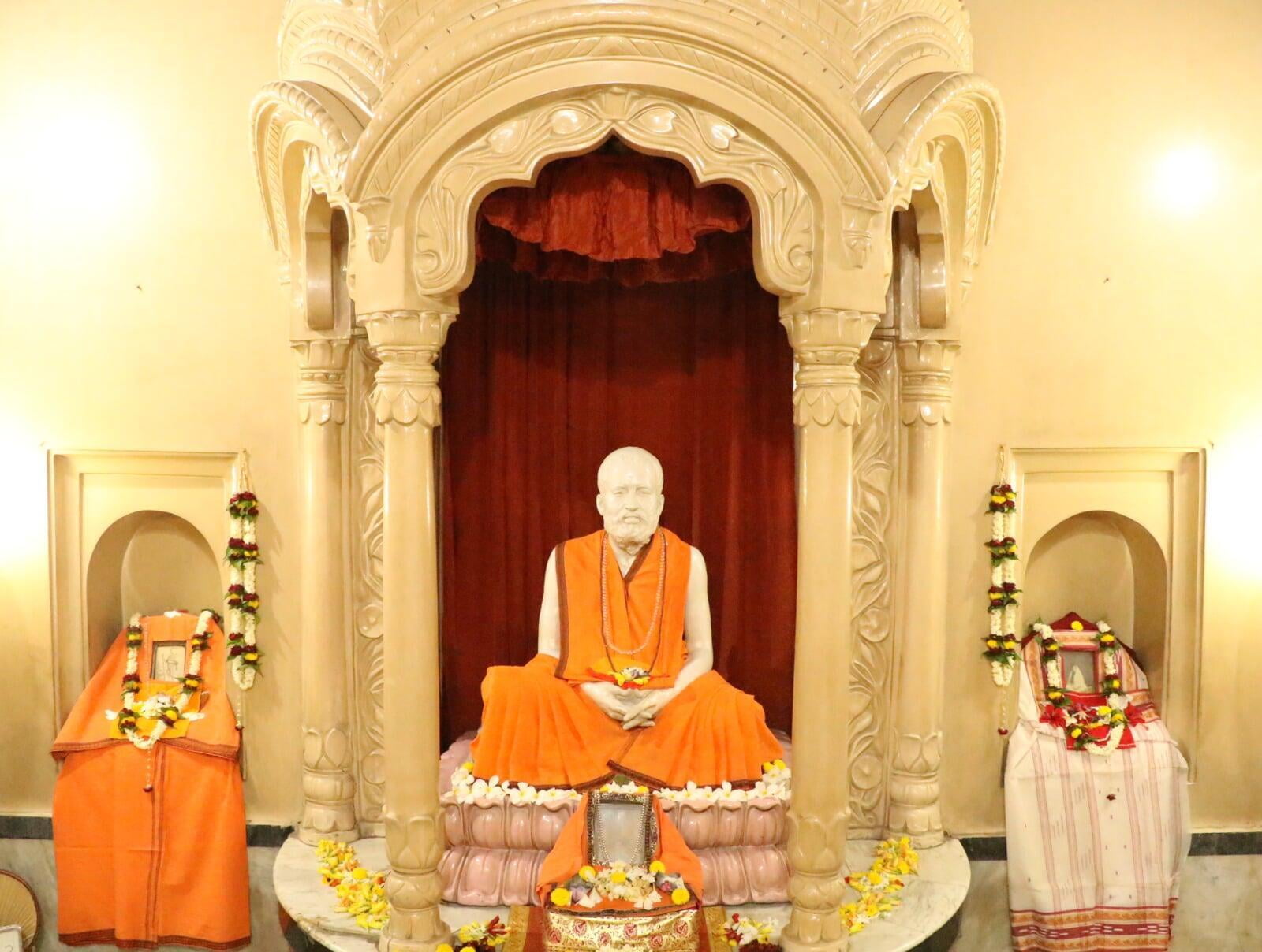 During the day time 'Rudrayaga', 'Saptasati Homa' and performance of pujas of many other deities were carried through and at nightfall Kalipuja and singing of Kali-kirtan were organized. On this occasion senior monks like Swamis Dhirananda, Sarvananda, Achalananda, Shankarananda, Jagadananda, Shantananda, Omkarananda and Kaivalyananda were present amongst others. During the great religious congregation held in the afternoon next day noted scholar Pandit Pramatha Nath Tarkabhusan gave discourses on the Bhagavat. The idol of Sri Ramakrishna installed in the temple has its own history. The marble image of Sri Ramakrishna was curved out as desired by the wife of Solicitor Sri Achal Kumar Maitra of Bhawanipore in Calcutta. The lady was an initiated disciple of Swami Brahmananda. One Sri Pandurang Karmakar, a sculptor living at Jhautala Road in Calcutta was provided with a photograph of Sri Ramakrishna, about which Sri Ramakrishna had said that time will come when the said image will be worshipped in all houses, and physical features of His personage were explained. Basing upon the photograph the sculptor prepared a model made of plaster of paris. Swami Brahmanandaji, Swami Saradanandaji and Jogin Ma (Holy Mother's attendant and companion) visited the sculptor's studio twice and having found satisfaction with the model, approved it.